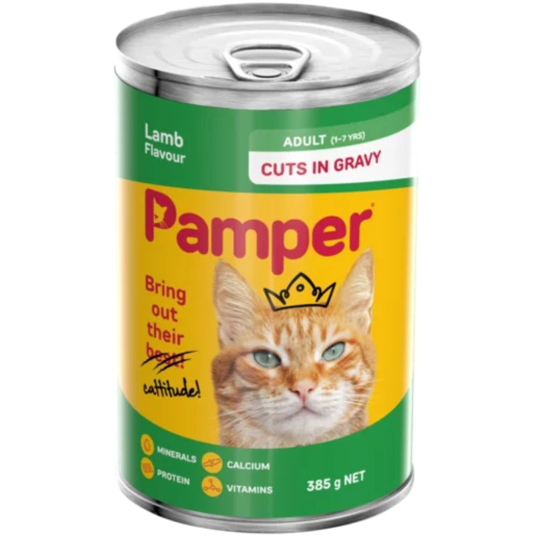 / Pamper Lamb Flavoured Cuts In Gravy Cat Food Can 385gr