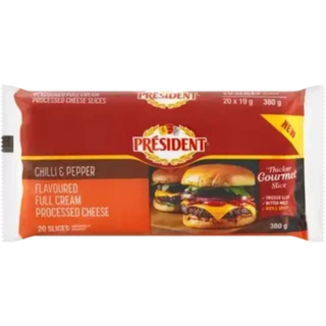 President Chilli And Pepper Flavoured Full Cream Processed Cheese 20 Slices